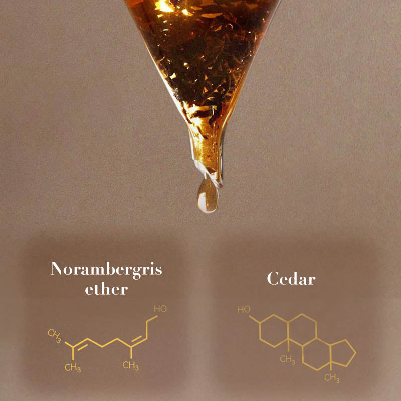 ESTRATTI VEGETALI: Questo profumo è arricchito con estratti naturali come cedro ed etere di Norambergris, sprigionando un aroma ricco e terroso che conferisce al profumo raffinatezza e profondità.