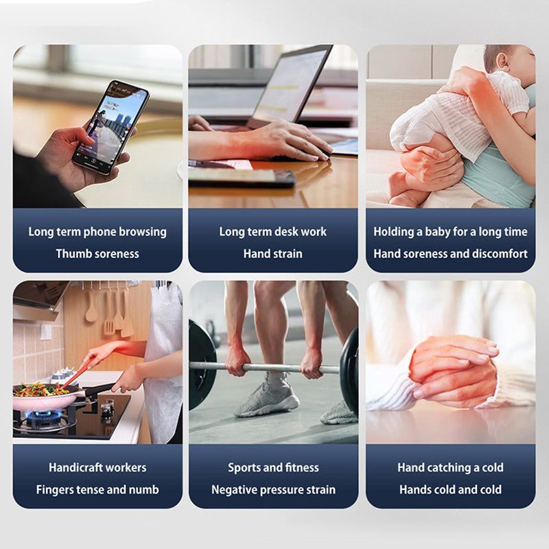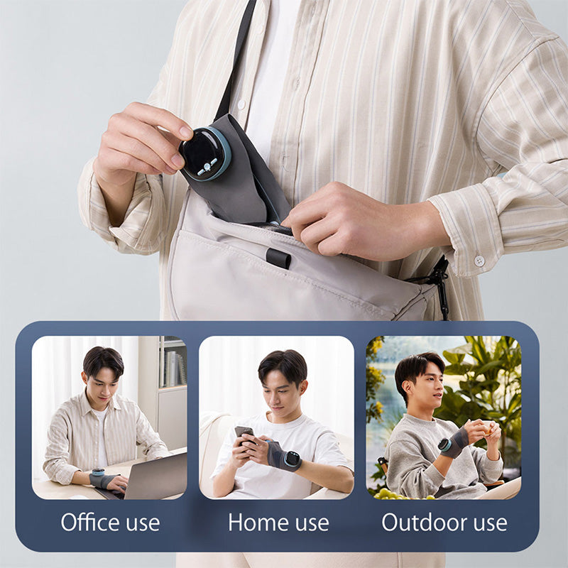 FACILE DA USARE: indossa facilmente il tutore con il processo in quattro fasi facile da seguire: inserisci il pollice nella fibbia, avvolgi il tutore attorno al polso, regola la vestibilità con il velcro e installa il controller per attivare la funzione di massaggio.