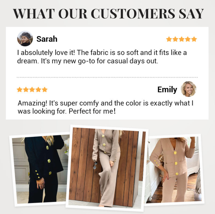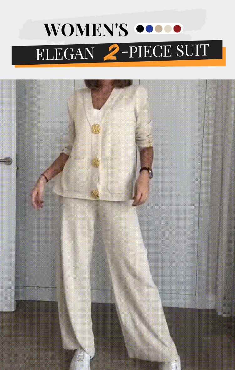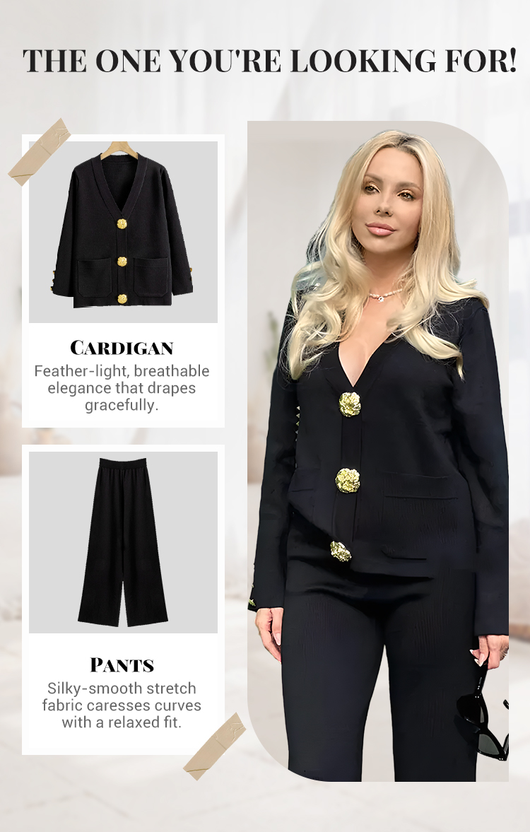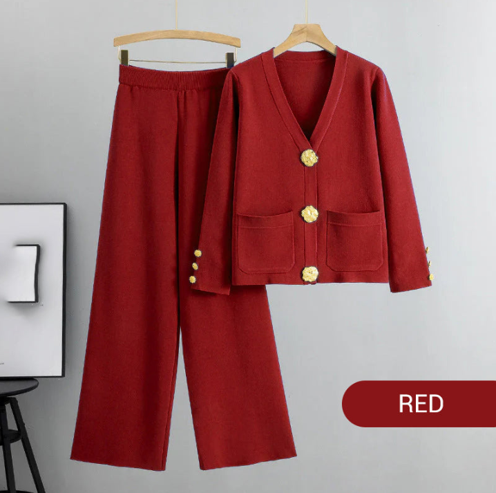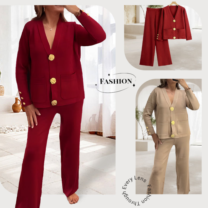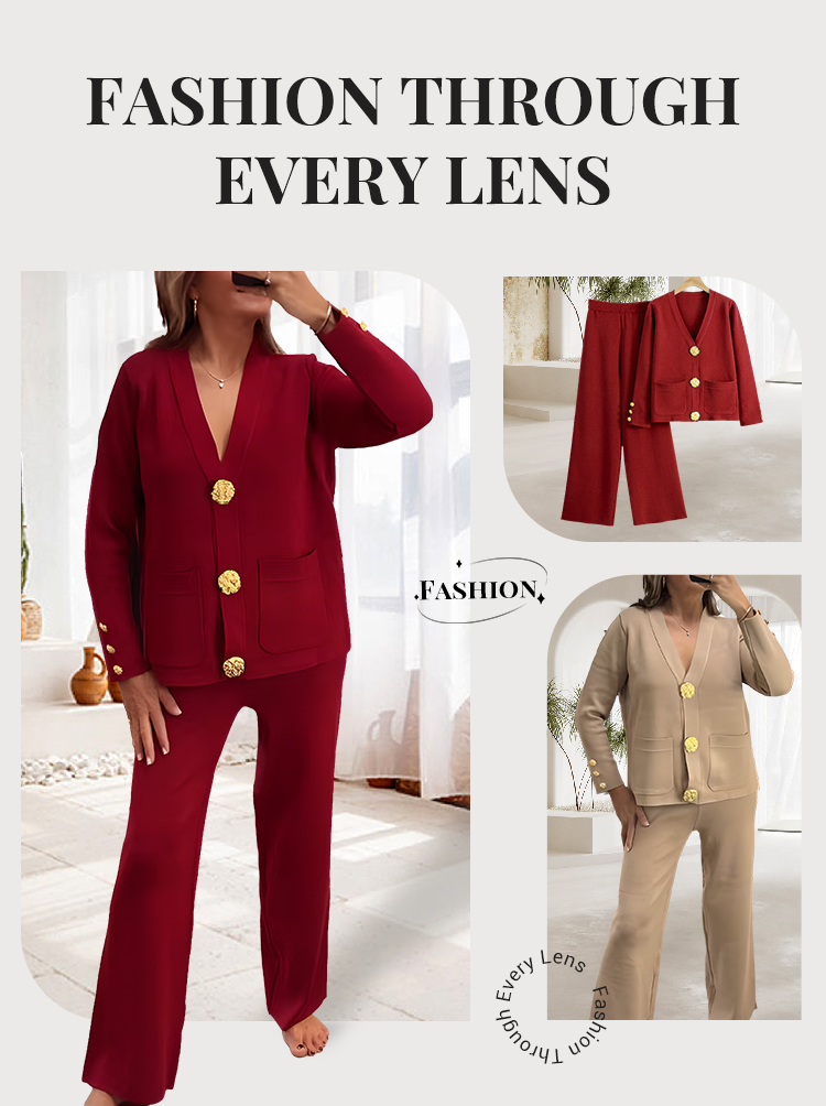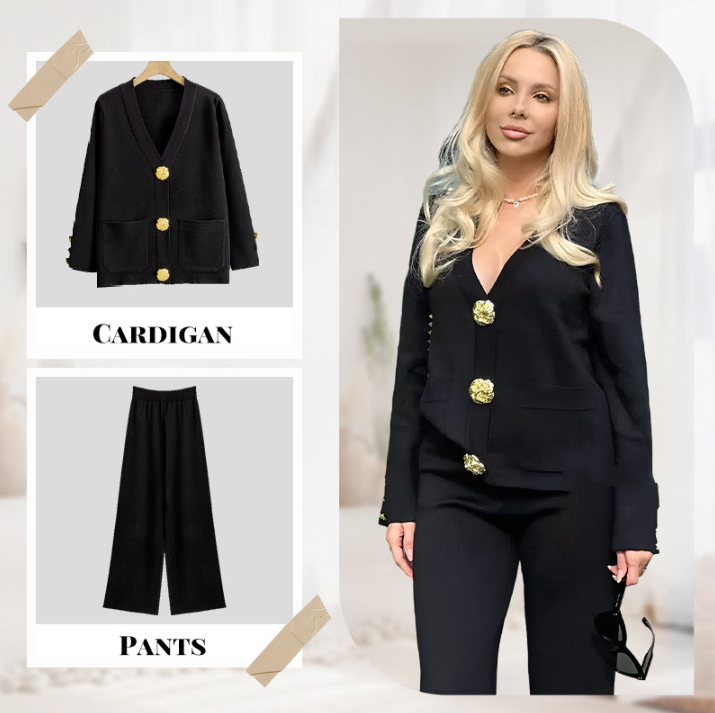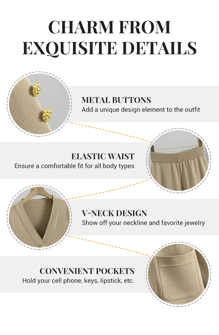 Maglione con Bottoni da Donna e Pantaloni a Gamba Larga Set di 2 Pezzi