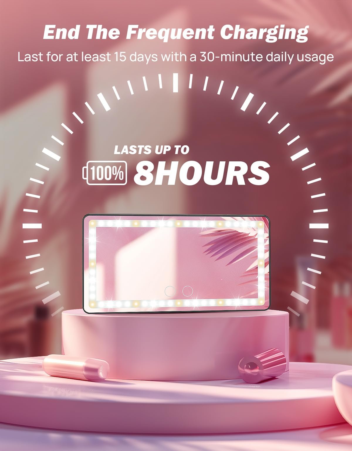 Batteria al litio integrata da 1500 mAh, ricaricabile tramite auto, prese di corrente, computer e fonti di alimentazione mobili, che consente di utilizzare lo specchietto cosmetico gratuitamente in qualsiasi momento e ovunque. Super nitido, non dovrai più chinarti quando ti trucchi. Illumina la tua bellezza senza ostacolare ulteriormente la visuale dal tuo sedile.