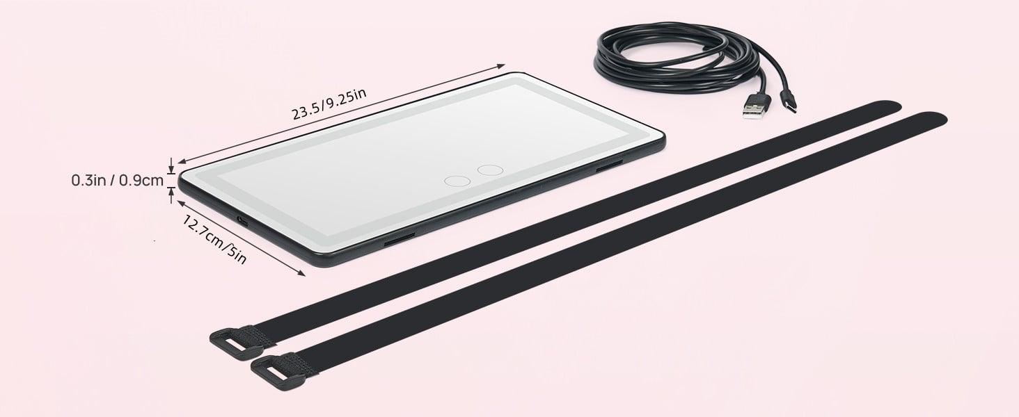 Le dimensioni dello specchietto cosmetico per auto sono 23,5 cm/9,25 pollici - 12,7 cm/5 pollici, adatte alla maggior parte delle alette parasole delle auto. Ultra sottile, facile da installare e utilizzare, non occupa spazio extra nell'auto. Dotato di cinghie di rinforzo regolabili per una facile installazione e utilizzo.