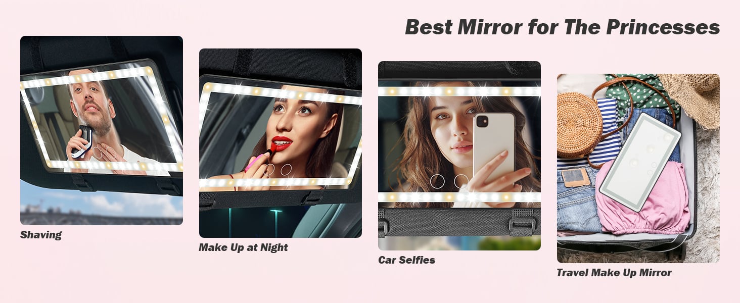 Non arriverai mai più in ritardo o impreparata grazie a questo specchietto cosmetico LED per auto, facile da installare, resistente e ricaricabile. Truccati sempre e ovunque e sfoggia sempre il tuo look migliore! Questo accessorio per auto è il regalo perfetto per l'anniversario della moglie, la fidanzata, la figlia, il compleanno della mamma, San Valentino, la festa della mamma, Natale e il Ringraziamento.