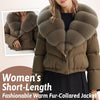 Giacca da donna a collare di pelliccia calda di moda di lunghezza breve (piuma di anatra bianca islandese)