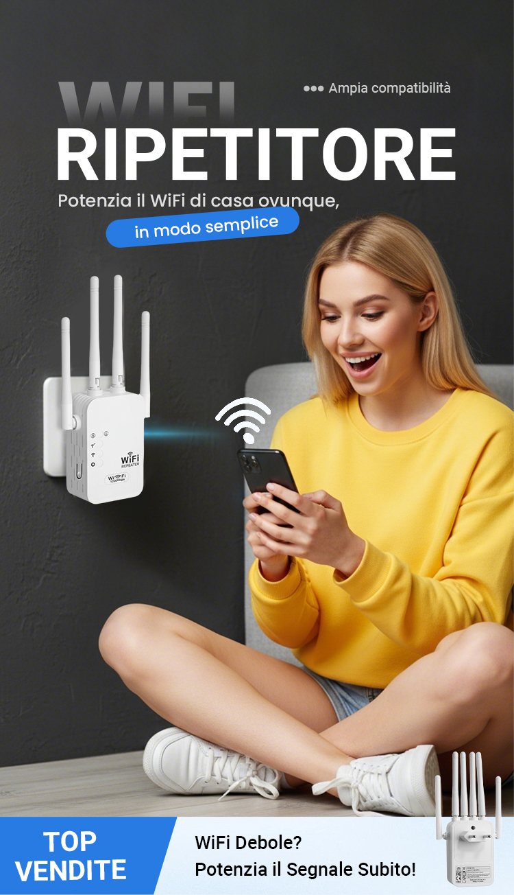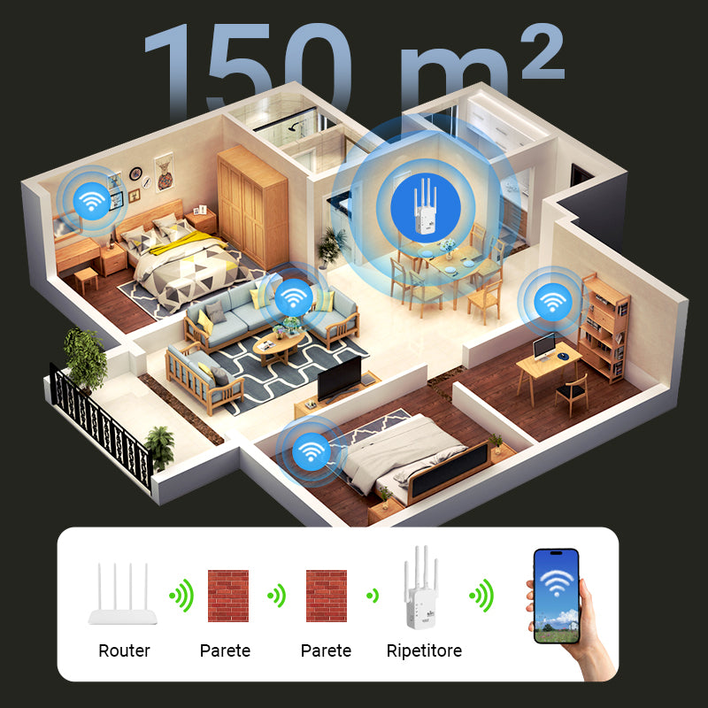 🎁Ultimo giorno: sconto del 49%! 🔥 Amplificatore Wi-Fi 2025 – 1200 Mbit/s, dual band (5 GHz / 2,4 GHz) 📶 Amplificazione massima del segnale – connessione stabile in tutta la casa!