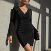 MANICHE LUNGHE - Le maniche lunghe, che offrono un tocco di raffinata eleganza e copertura, rendono questo abito una scelta versatile per le serate più fresche o per gli eventi più formali, bilanciando l'affascinante scollo a V per un look chic.